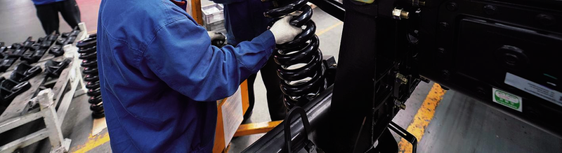 员工正在装调车辆弹簧
